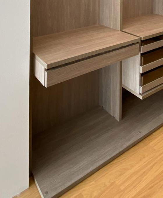 Sencillo, elegante y desprovisto de cualquier elemento superfluo. Este espejo de cuerpo entero se rinde a su función de poder observar sin distracciones el resultado de una combinación de prendas o detenerse para realizar un saludable ejercicio de vanidad. Su estructura de metal giratorio 180º en aluminio mate, sin grandes artificios, se instala en el interior del armario y se puede ocultar por su sistema de extracción por guías.